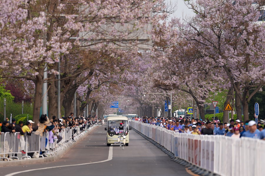 此外,本年还出现了为东谈主类跑者递水、清算垃圾、加油壮胆的机器东谈主做事官,成为赛场上另一齐情景线。